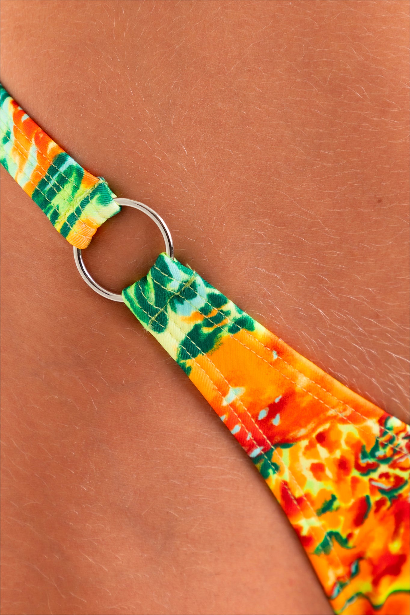 | V-Cut Bikini Bottom. Its print brings a distinctive character that makes it a unique and versatile piece, elevating your beach look with a touch of modernity and exclusivity. The V-cut design elongates the figure and enhances curves, offering a flattering and sophisticated fit. - V-cut silhouette that visually lengthens the legs. - Slim sides for a modern and flattering fit. - Silver ring detail for a sophisticated accent. - High-quality Italian Lycra Xtra Life®, chlorine-resistant and long-lasting. - UPF 50+ sun protection to care for your skin. Our model is wearing size XS. Height: 160 cm / 5’3” · Bust: 78 cm / 30.7” · Waist: 63 cm / 24.8” · Hips: 88 cm / 34.6” |